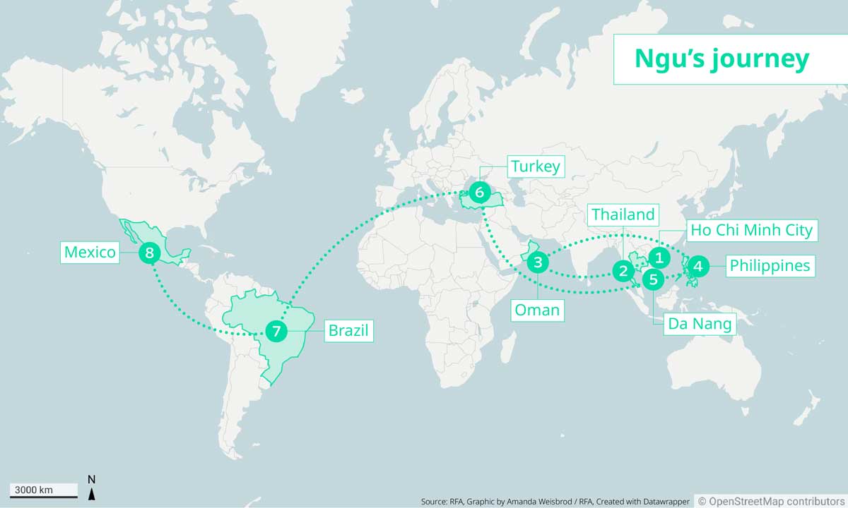 “I flew from Saigon to Turkey and then to Brazil. From Brazil I flew to Mexico and then went to the border between Mexico and the U.S.,” he recounted.